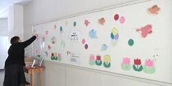 3月17日(火)、地域ボランティアの方々が来校し、図書室内や廊下などの掲示物を春に向けて張り替えてくださいました。