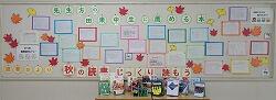 図書委員会が、昼の放送時に本の紹介をしたり、昼休みには図書室にて本の貸出のほか「しおりづくり」なども行えたりするなど、読書週間にあたって積極的に取り組んでいます。