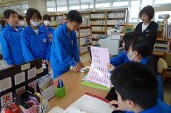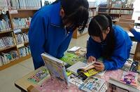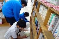 4月23日(水)、昼休みの図書室では、図書委員会が本の貸出しの仕事をしています。