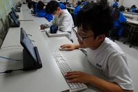 【3年生、タブレットで自主学習】