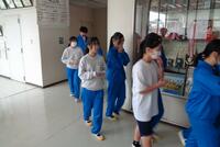 「大きな地震が発生し、その後、調理室付近から火災が発生した。」という想定で避難を開始しました。