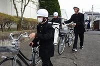 今日は、徒歩通学の生徒も、自転車で安全に登校してきました。