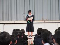 生徒は、2年生としての自覚をもち、真剣なまなざしで話を聴いていました。