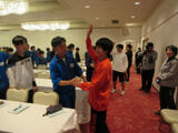 夕食の後には、レク係の生徒が企画した「ジェスチャー伝言ゲーム」を行いました。