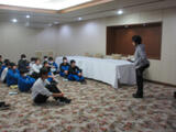 宿泊学習1日目を振り返り、明日からまたよりよい活動ができるように課題や今後の日程を確認しました。