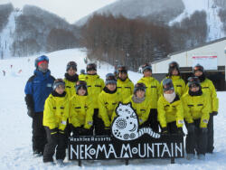 0109(金)2年スキー宿泊学習2日目② 投稿: HP担当 (01/09) 1月9日(金)、スキー実習2日目です。 今日は、1日目とは違い、晴れ間が見えます。 スキーの班ごとに集合写真を撮ってから、練習が始まりました。 【2日目も、「がんばるぞ!」】 -