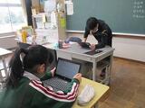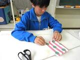 3月19日(木)1時間目、2年1組の家庭科の授業において、今日も地域ボランティアの皆様にご協力をいただきながら、一人一人がバックづくりを仕上げることができました。