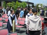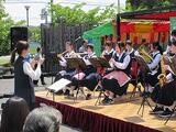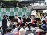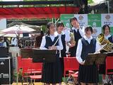 普段は屋内での演奏が多い吹奏楽部のみなさんですが、今回は暑いくらいの日差しのもと、屋外での発表となりました。たくさんの方が見守る中4曲を披露すると、会場を訪れた方から大きな拍手が送られました。吹奏楽部のみなさん、すばらしい演奏をありがとうございました。